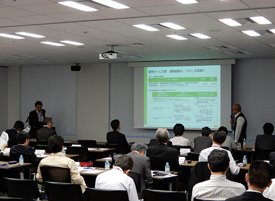 年間を通じて自チームの改革・改善推進に取り組み、研修を通じて働き方改革の背景や、改革推進の技法・ツールを習得しています。役員クラスも出席し大盛況!