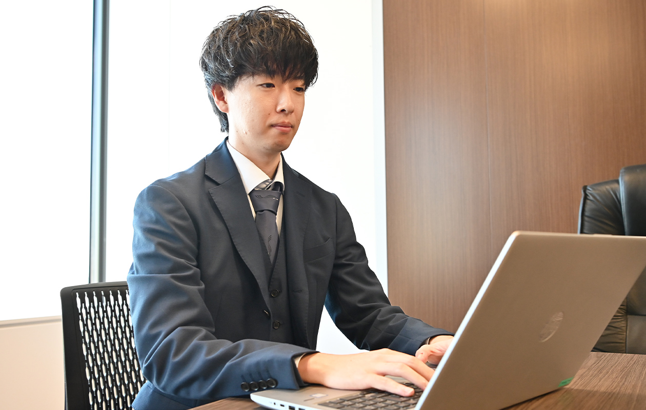 就職活動中は、不動産会社や一般営業職など幅広い企業・職種を受けていましたが、ITスキルはこれからの時代に重宝されると考えていました。たまたま企業説明会で担当の方からお話を伺ったことがきっかけで、インターンシップに参加してみることにしたんです。文系出身なのでIT業界への不安もあったのですが、入社後の研修が手厚く、未経験でもITスキルを習得する環境が整っていることがわかり、入社を決めました。