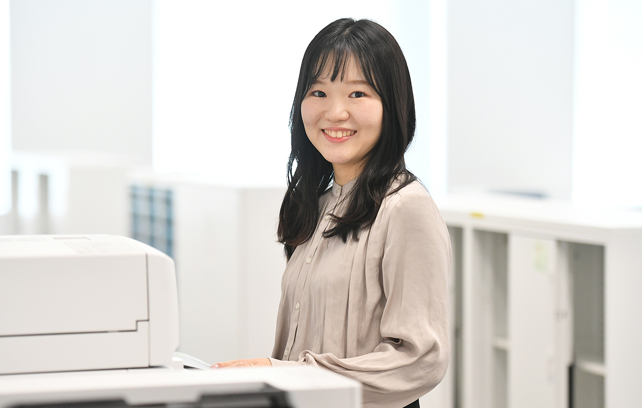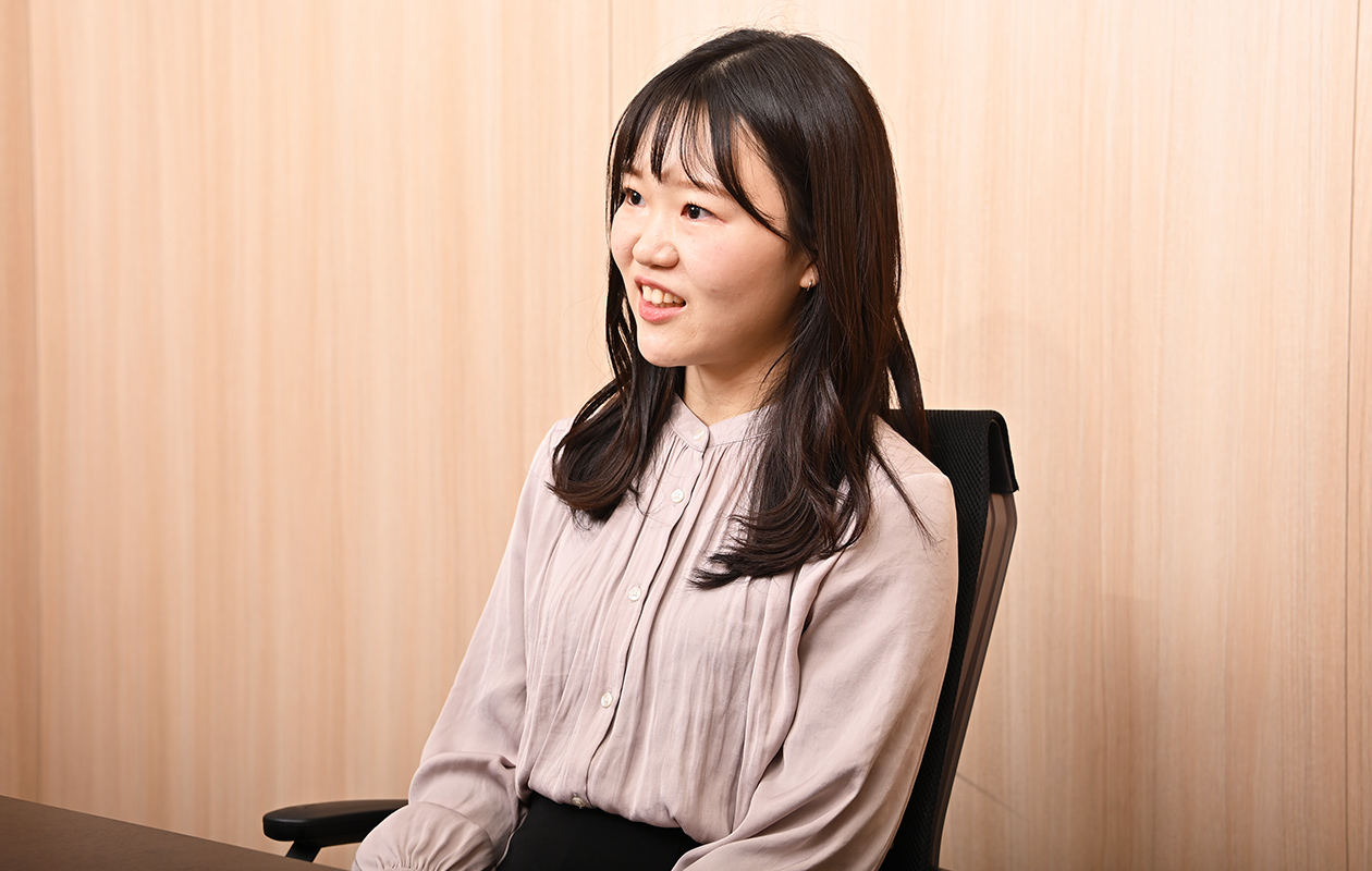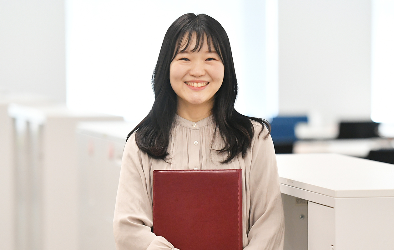 入社理由にもなった研修制度の充実度は、本当にすごいと思いました。もちろん、ゼロからスキルを身に付けていく作業は楽ではなく、相応の努力も求められます。ただ、辛い状況になった時は周りの人たちがしっかりサポートしてくれるので、諦めなければ必ず乗り越えることができると思います。今の部署に異動してきてから、新たな仕事に取り組んでいることもあり、迷ったり困ったりするシーンも少なくないのですが、そんな時でも仲間の存在が大きな助けになっています。