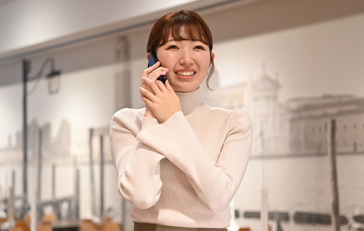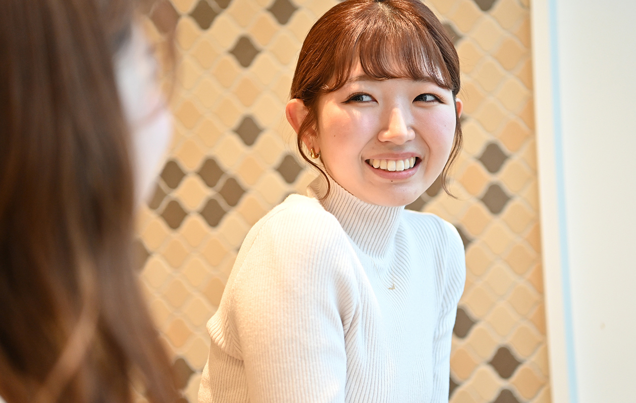 社内の雰囲気は入社前に持っていたイメージ通りで、プレッシャーなどもなくのびのびと働けています。最初に配属された部署での仕事は、思っていたよりも下流工程の比重が高くて戸惑いましたが、異動した今の部署は上流工程の仕事がメインなので、自分の強みであるコミュニケーション能力を発揮しながら働けていると感じています。